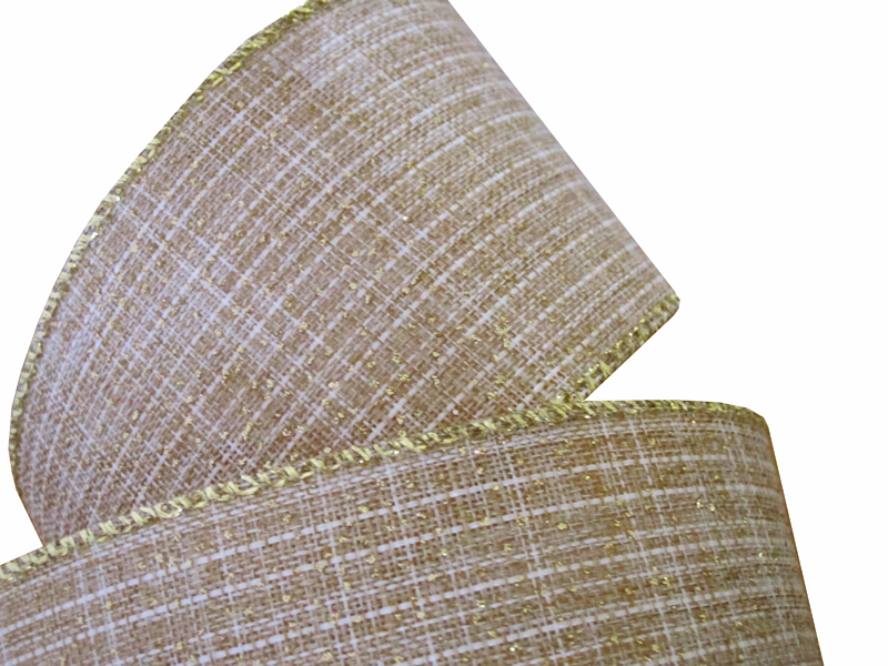 Band mit Drahtkante 63mm - Leinen Uni Hell Braun Naturell Gold Glanz Glitzer Rand (Rolle 3 Meter)