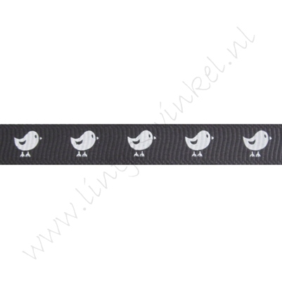 Lint met print 10mm - Vogeltje (Donker Grijs)